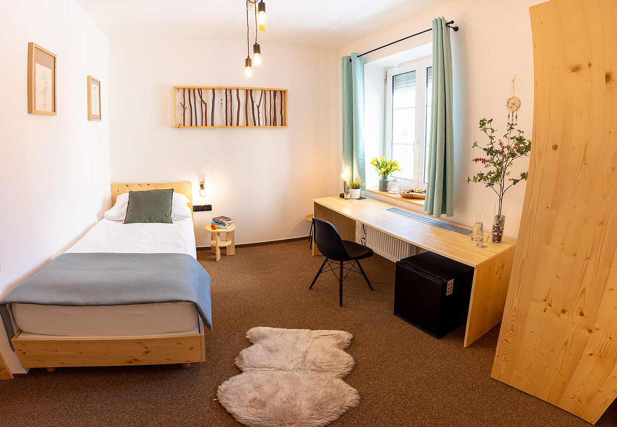 menšia izba so samostatným lôžkom, s možnosťou 1 prístelky, sociálne zariadenie