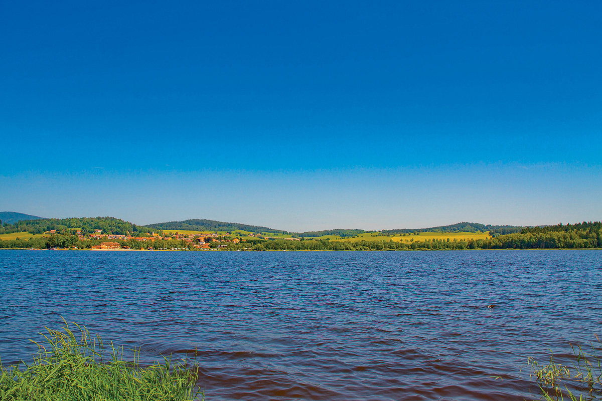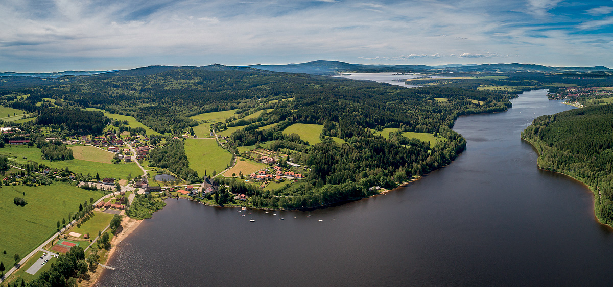 Černá v Pošumaví ponúka veľa zábavy pre vodných športovcov, cyklistov, rodiny s deťmi a rybárov, ale tiež nádherné vyhliadky na Lipenské jazero a Smrčinu (1.338 m), zrkadliace sa na jeho hladine. Obľúbená rekreačná obec leží v okrese Český Krumlov na severnom brehu Lipna v jeho najširšej časti medzi Frymburkom a Hornou Planou. Dominantou obce je barokový, novorománsky upravený kostol Nepoškvrneného počatia Panny Márie z konca 18. storočia. Pri obce ležia ložiská grafitu, ťažba tuhy a rašeliny tu začala už v 19. storočí a o sto rokov neskôr patrili tunajšie tuhové preteky k najväčším exportérom grafitu na svete. Dnes sa môžete prejsť po náučnom chodníku grafitovej štole Jozef alebo sa pozrieť na umelo vyhlbené jaskyne v Muckovských vápencových lomoch. Podobne preslávený býval kniežací schwarzenberský pivovar.