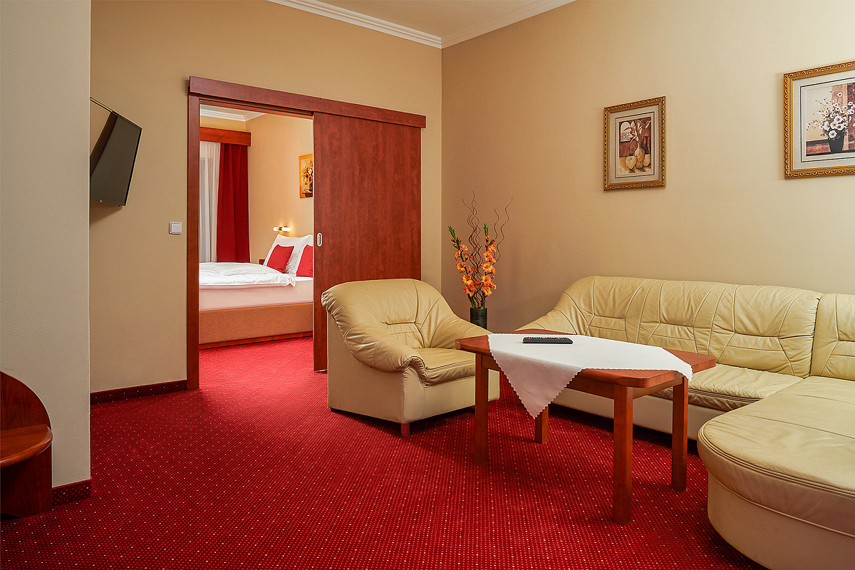 izba spravidla s manželskou posteľou či 2 samostatnými lôžkami, s možnosťou prístelky pre 1 osobu, sociálne zariadenie