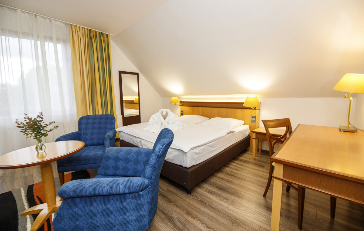 25 m² – izba s manželskou posteľou alebo 2 samostatnými lôžkami, možnosť 1 prístelky, sociálne zariadenie, balkón