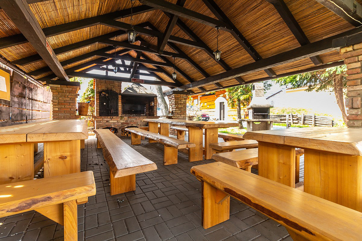 vonkajšia terasa s posedením a grilom a udiarňou, vyhradené parkovisko