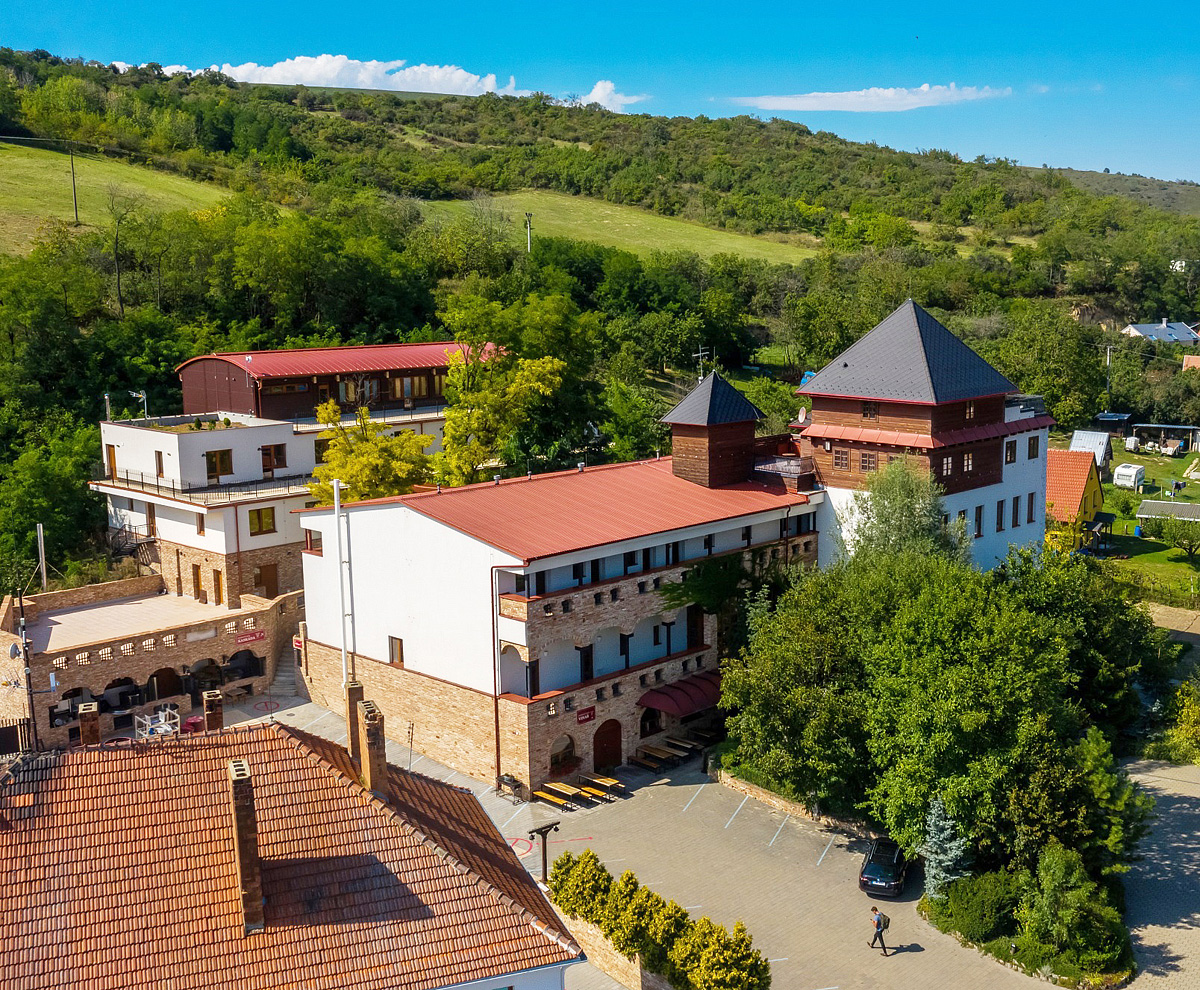moderný hotelový komplex v malebnej krajine okolo viníc s nádhernými výhľadmi