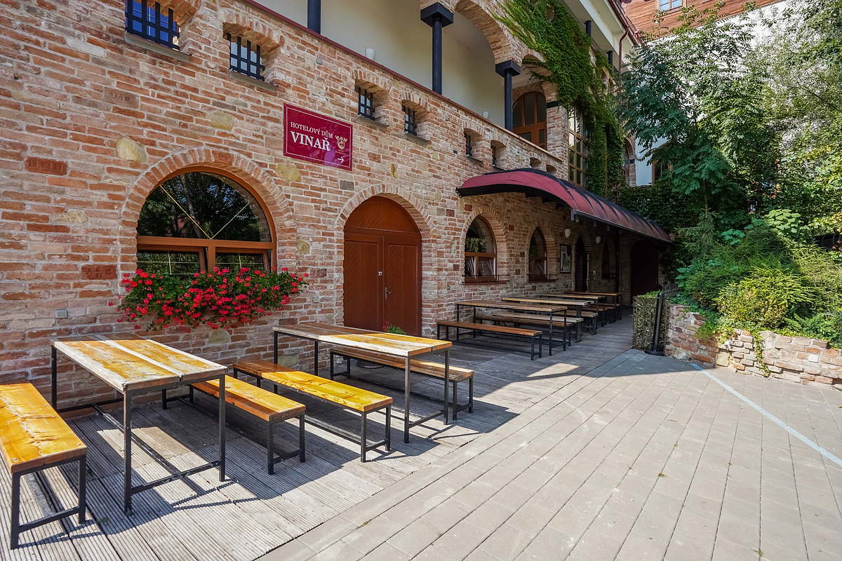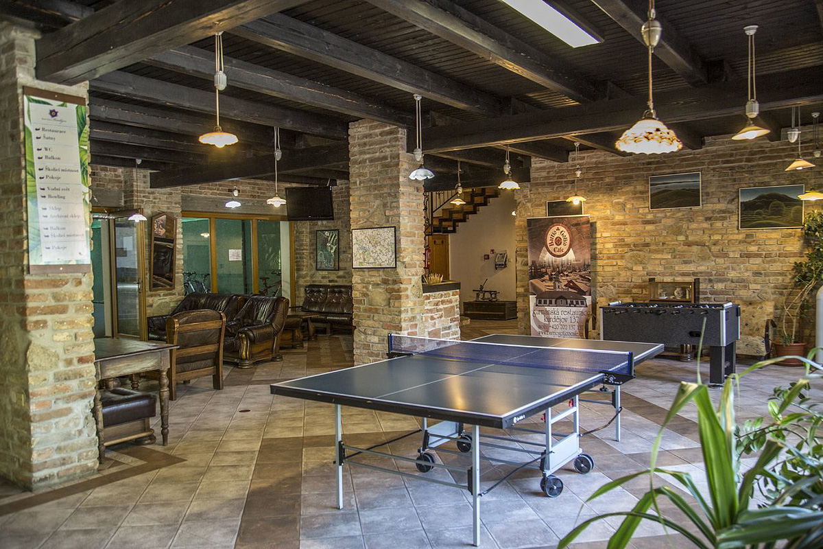recepcia, veľká lobby reštaurácia s barom, bar v rámci wellness centra, vinárstvo s posedením, bohatá vinotéka s ponukou lokálnych tichých i šumivých vín, 2x spoločenská miestnosť, 8x seminárna miestnosť s projekčnou technikou max. až pre 200 os., záhrada s detským ihriskom, výťah (Vinař), vyhradené parkovisko, wi-fi pripojenie k internetu
