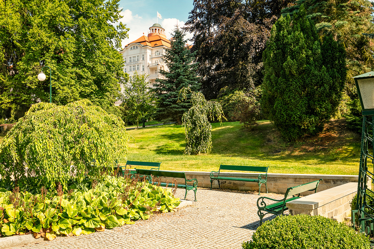 noblesný hotel s wellness na ikonickom mieste nad centrom K. Varov