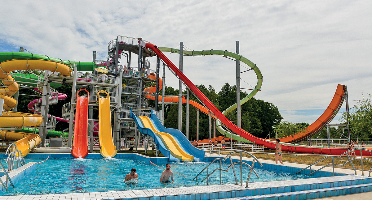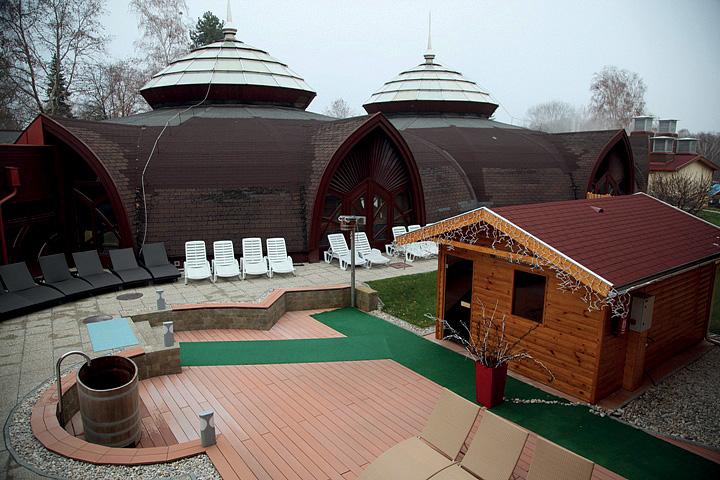 vstup do mestských kúpeľov Zalakaros (prepojené bezbariérovou chodbou), v rámci kúpeľov vnútorné a vonkajšie bazény, termálne bazény, detské bazény, aquapark, veľká záhrada, posilňovňa, saunový svet*, liečebné terapie*, masáže*, lanový park*; hotel má v rámci mestských kúpeľov vlastnú vyhradenú záhradu s lehátkami, v kúpeľoch prebieha pravidelná údržba bazénov, vždy je ale zaistená prevádzka väčšiny z nich