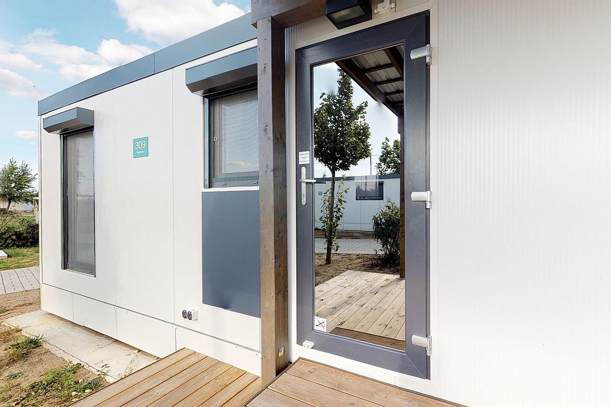 mobilhome 4 - 1 spálňa s manželskou posteľou, 1 spálňa s 2 samostatnými lôžkami, obývacia izba s kuchyňským kútom, sociálne zariadenie, terasa, max. 5 dospelých osôb