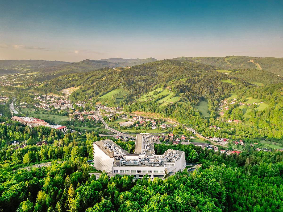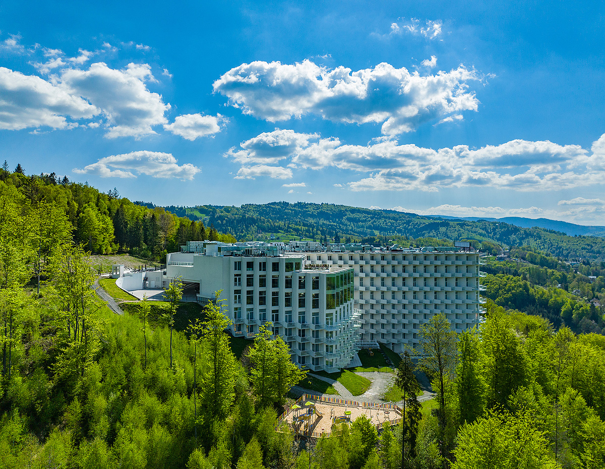 upresnenie - Zcela moderný päťhviezdičkový hotel na svahu Góra Bukowa ve stredisku Wisła tvorí trojkrídlová budova, súčasťou komplexu je i hotelový aquapark s veškerými atrakciami.