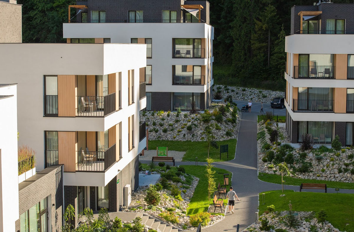 moderný apartmánový komplex v srdci Sliezskych Beskýd s výhľadom na hory a lesy