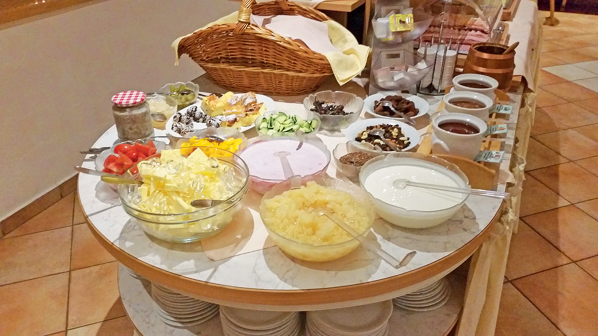sladké či slané pečivo a zmrzlina (pre deti do 18 rokov) medzi 15.30 až 16.30 hodinou (od pondelka do piatku), nápoje za poplatok