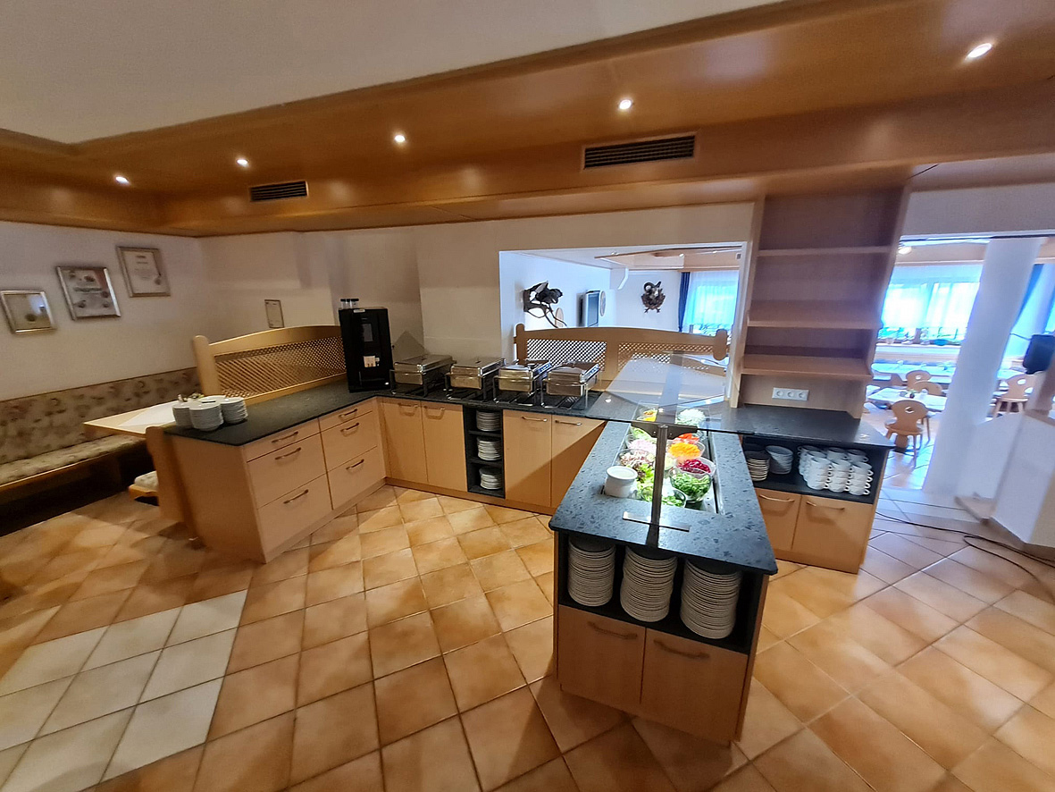 servírované 3chodové menu alebo formou bufetu s výberom hlavného jedla s prílohou, spravidla servírované predjedlo, šalát a dezert; 1× týždenne tematický bufet alebo grilovanie (v závislosti od počasia); od 15:30 do 20:00 hod. zdarma vybrané nealkoholické nápoje, ostatné nápoje za poplatok