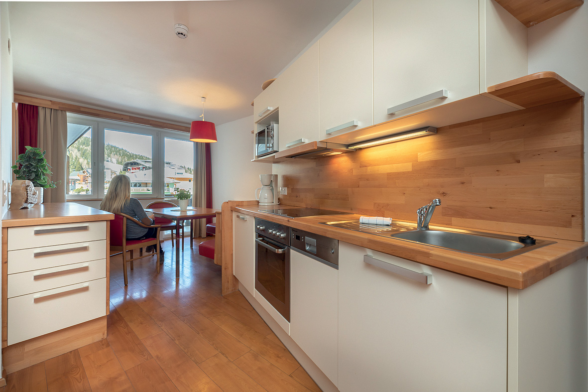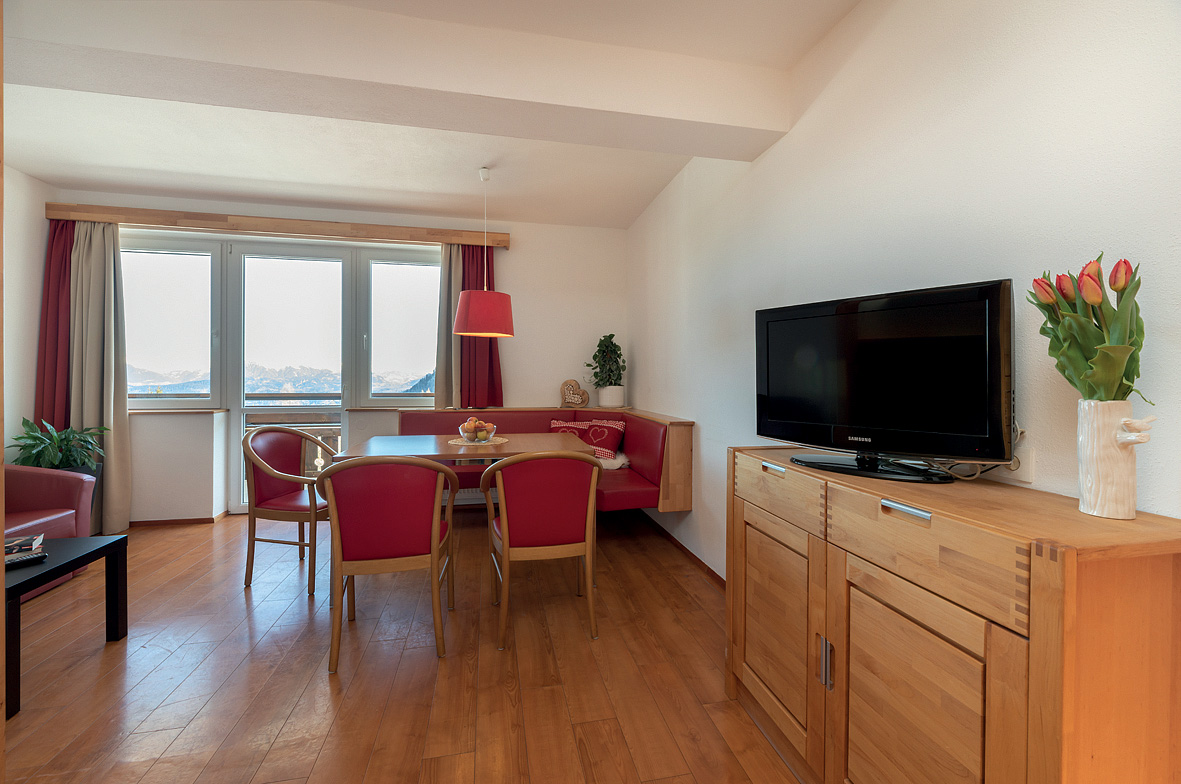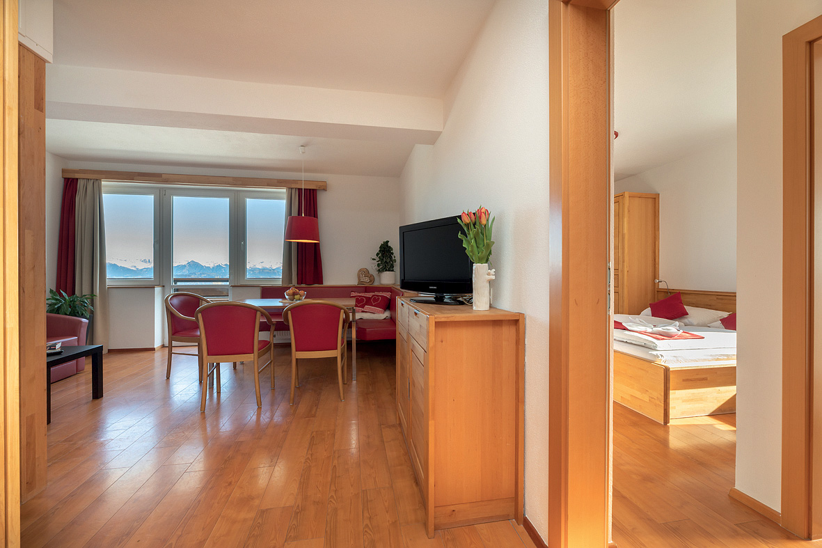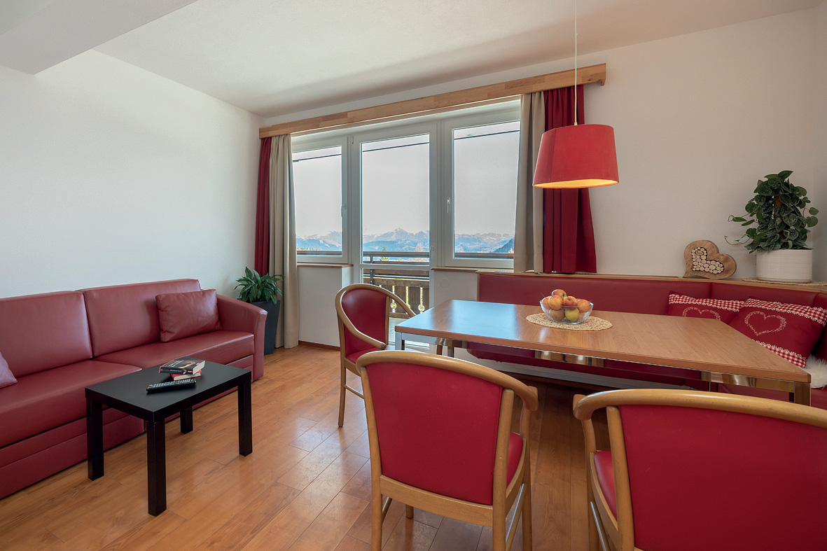 45 m² - 1 kabína s manželskou posteľou, obývacia izba s kuchynským kútom a rozkladacím gaučom pre 2 osoby, sociálne zariadenie s vaňou, oddelené WC, balkón v rámci spoločnej terasy s apartmánom mono 4