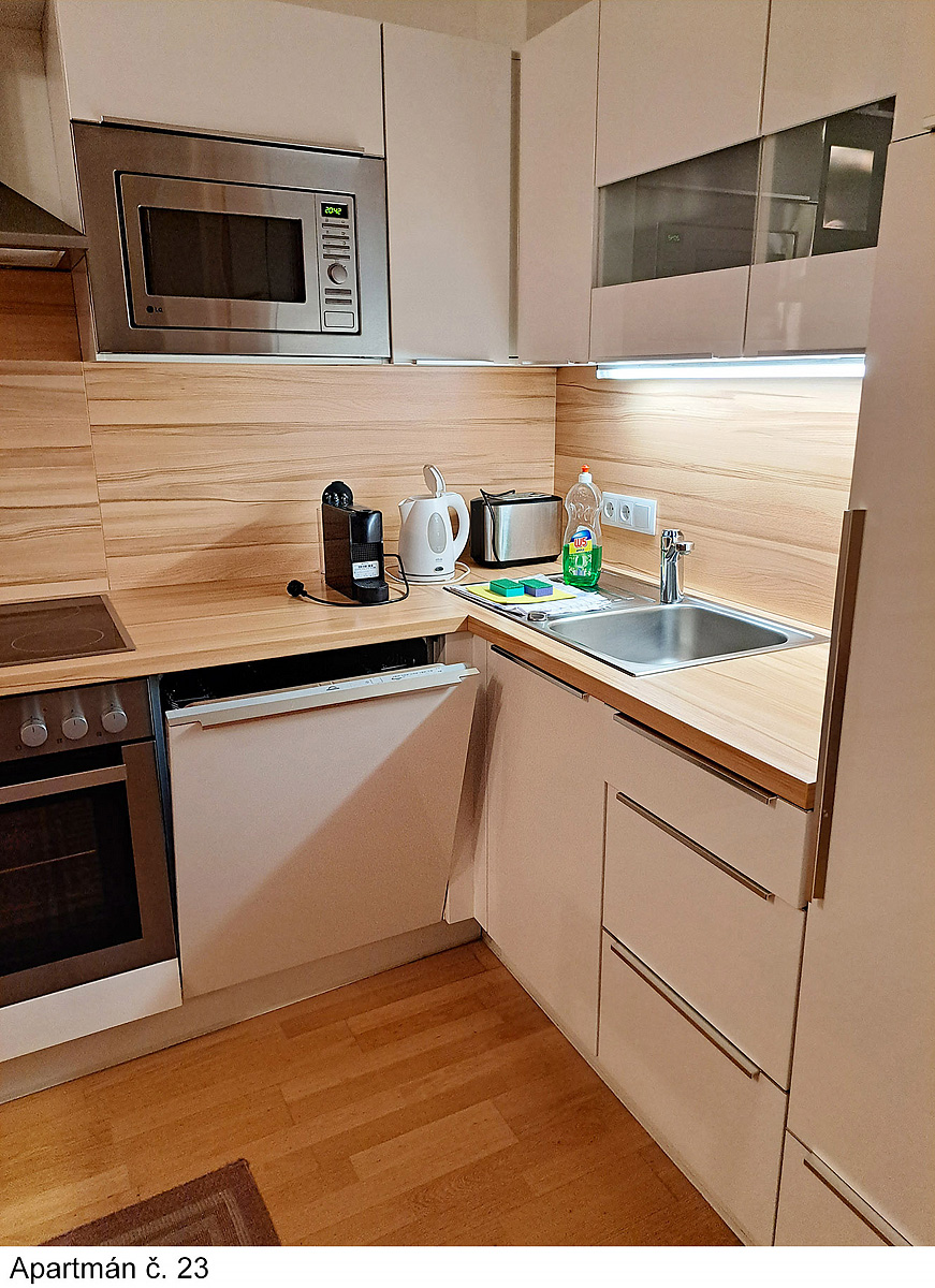 TV sat., umývačka riadu, trúba, mikrovlnka, kávovar Nespresso, rýchlovarná kanvica, wi-fi pripojenie k internetu