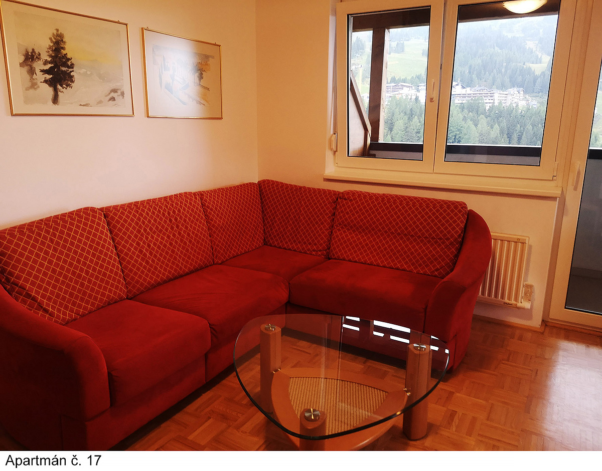 65 m² - 1 spálňa s manželskou posteľou, spálňa s 2 samostatnými lôžkami, obývacia izba s kuchynským kútom a rozkladacím gaučom pre 2 osoby, predsieň, sociálne zariadenie, oddelené WC, privátna infrasauna, balkón