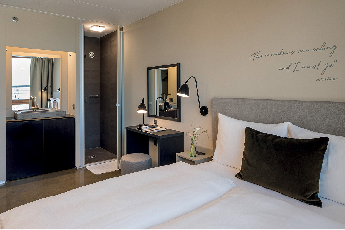 38 m² - izba s manželskou posteľou a rozkladacím gaučom (šírky 140 cm) až pre 2 osoby, sociálne zariadenie, predsieň / úschovňa bicyklov, min. obsadenosť izby sú 4 osoby