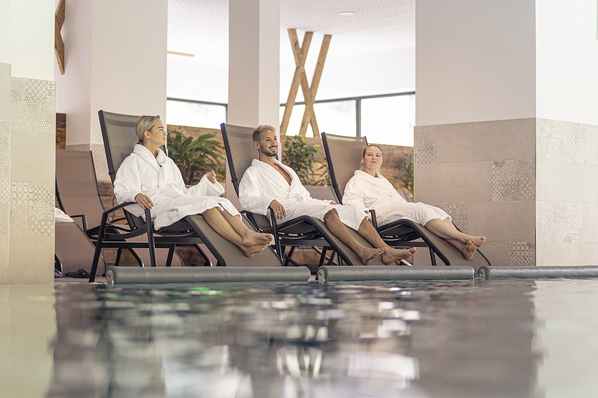 bazén s detským brodiskom, panoramatická fínska sauna, bio sauna, para, infrakabína, zážitkové sprchý, ľadová jaskyňa, relaxačná miestnosť s lehátkami, strešná záhrada pre relaxáciu, masáže*, požičovňa* horských bicyklov a elektro bicyklov
