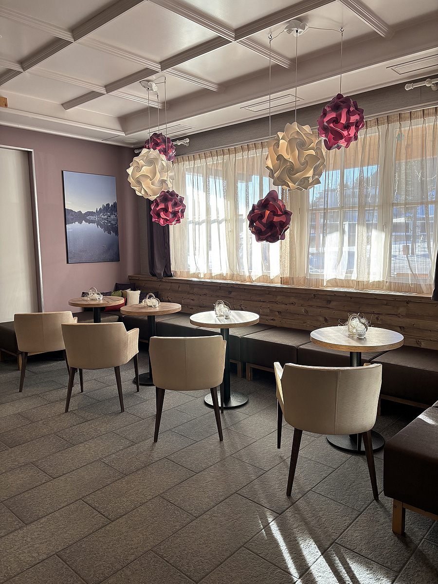 ubytovací komplex pozostávajúci z viacerých chaletov a budovy s recepciou vzdialenej cca 2 km