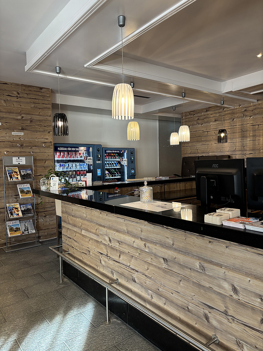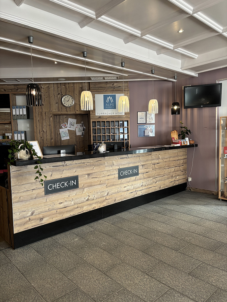 recepcia (neďaleko lanovky Kornockbahn) pre všetky chalety, parkovanie pri jednotlivých chaletoch