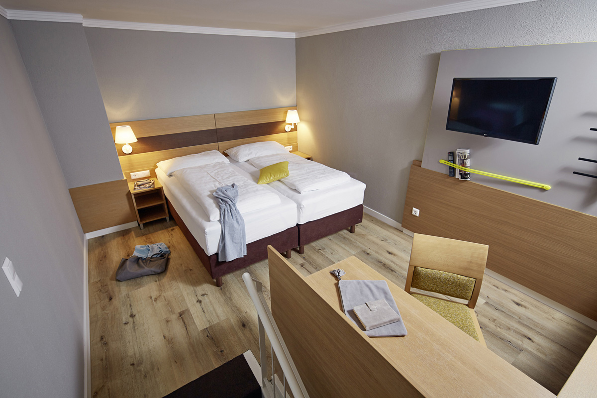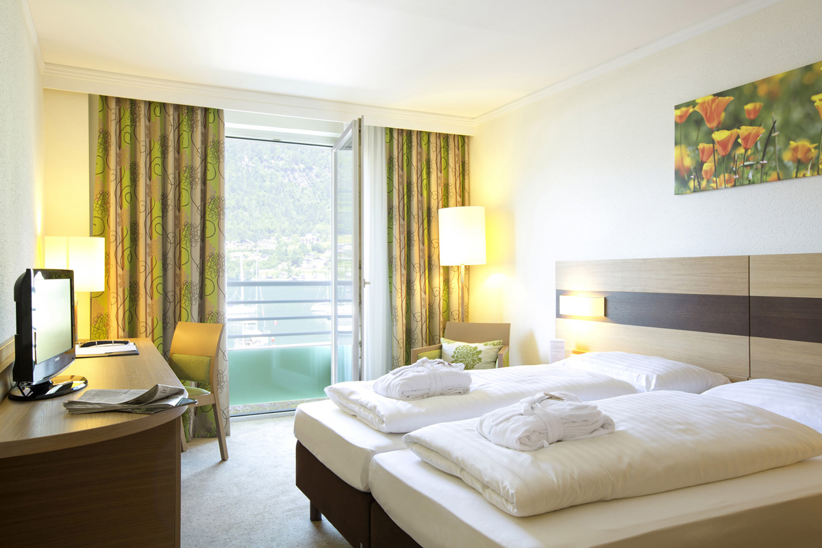 24 m² - izba s manželskou posteľou alebo 2 samostatnými lôžkami, sociálne zariadenie, balkón s výhľadom na jazero; nemožno ubytovať infanta