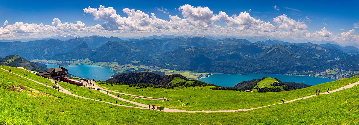 SchafbergBahn, najstrmšia ozubnicová dráha v Rakúsku, vozí viac než 125 rokov výletníkov z mestečka St. Wolfgang takmer na vrchol 1783 metrovej hory Schafberg. Počas 35 minútovej jazdy prekonáte výškový rozdiel takmer 1190 metrov. I v tomto prípade môžete zakúpiť cestovné lístky i pohodlne online. Každú nedelu v lete vychádzajú na túto trasu tiež historické lokomotívy z 19. storočia. V tomto prípade je však potrebná rezervácia. V hornej stanici sa otvára pohľad, z ktorého sa tají dych – na jazerá i vrcholy oblasti Soľnej komory (Salzkammergut), na juhu na Alpy a na severe na Šumavu. Úplne impozantný je odtiaľto masív Dachsteinu. Krásny výhľad sa tu naskytuje i z najstaršieho horského hotela v Rakúsku, Schafbergspitze, kde si môžete dopriať príjemné občerstvenie. Potom sa zubačkou SchafbergBahn dostanete späť do údolia. Niekoľko metrov od dolnej stanice sa nachádza prístavisko lodí WolfgangseeSchifffahrt (St. Wolfgang Schafbergbahn), odkiaľ sa na palube vrátite späť k východiskovému bodu vašej cesty.