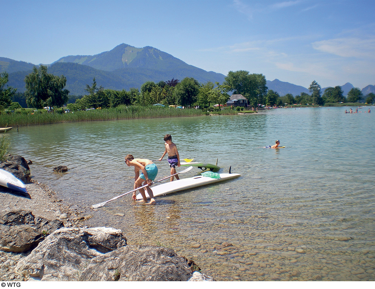 Jazero i jeho okolie poskytuje pestrú škálu aktivít pre rodiny s deťmi, nech už sa jedná o jazdu historickou zubačkou na horu Schafberg alebo výlet po stopách biskupa Wolfganga po najstaršom pútnom chodníku Európy. Lode flotily „WolfgangseeSchifffahrt“ na Wolfgangsee plávajú medzi St. Wolfgangom, St. Gilgenom a Stroblom viac než 145 rokov! Kolesový parník „Kaiser Franz Josef I.“ sa vydal prvý krát na svoju cestu v roku 1873. Dodnes patrí k najstarším lodiam tohoto typu na svete a je obľúbenou atrakciou pre deti i dospelých. Auto môžete nechať na bezplatnom parkovisku pri prístavisku lodí Gschwendt. Cestovný lístok na vlak a loď si zakúpite priamo na lodi. Pred výletom si môžete stiahnuť v Google Play alebo App Store bezplatnú aplikáciu Schafberg, kde nájdete časy odjazdov a príjazdov vlaku i lodi, mapu a ďalšie dôležité informácie. Cestovné lístky je možné si zakúpiť v predstihu i online. Pri nákupe cestovného lístku zubačkou si objednajte i miestenku na cestu späť do údolia. Na plavbu sa môžete vydať z niektorého zo siedmich miest, kde sa dá nastúpiť alebo vystúpiť a potom sa vydať na peknú prechádzku.