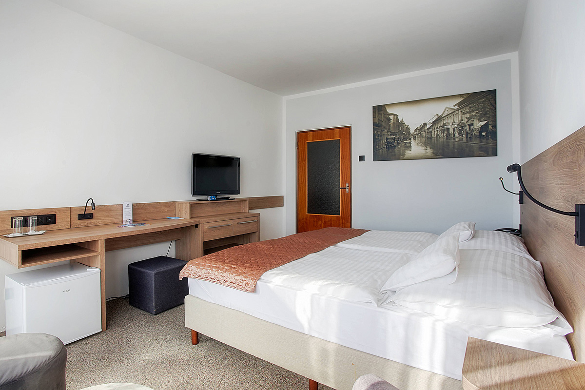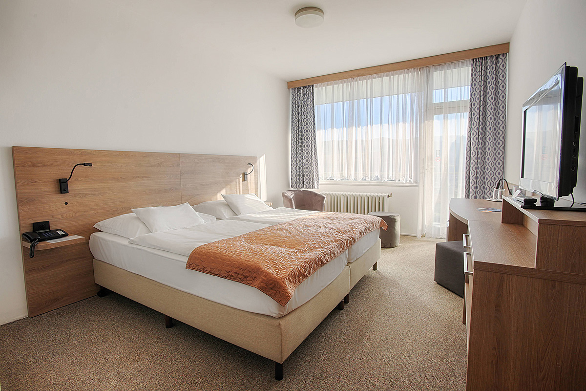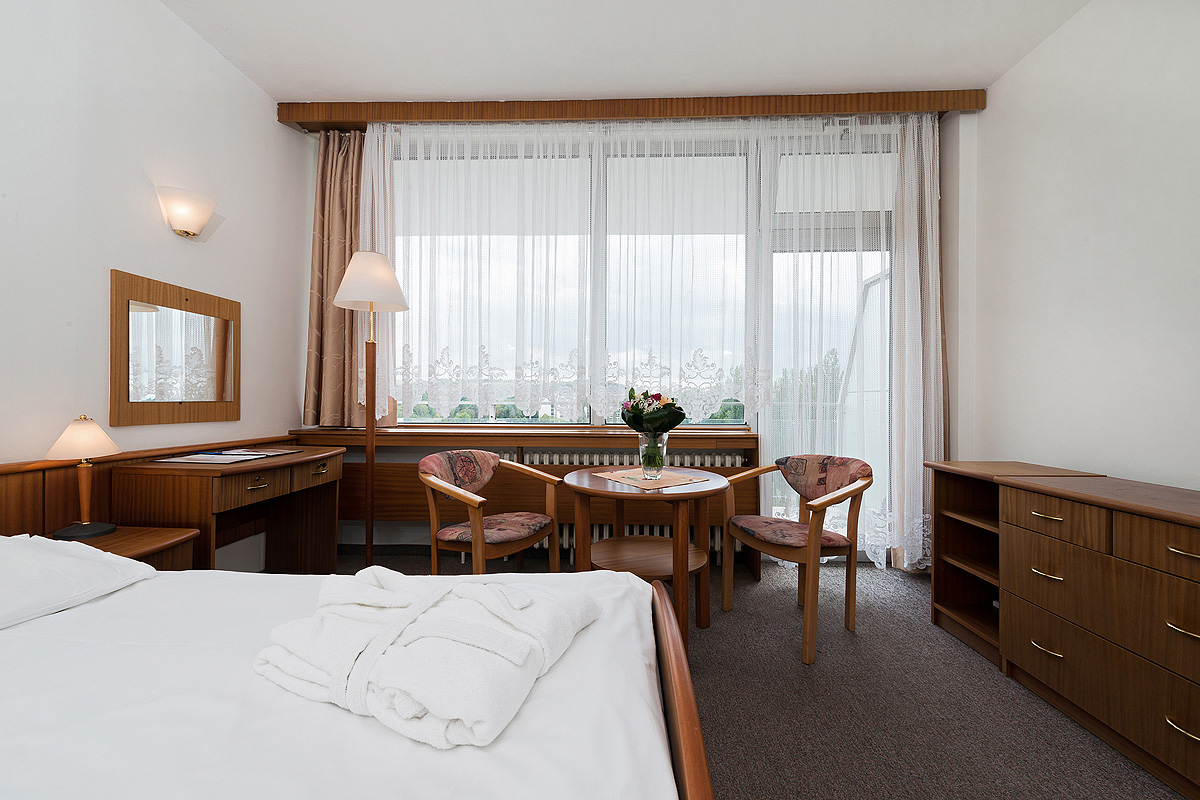 24m² izba s manželskou posteľou či 2 oddeliteľnými lôžkami, obsadená 1 dospelou osobou, rozkladacie lôžko formou prístelky pre dieťa do nedovŕšených 12 rokov, sociálne zariadenie so sprchou či vaňou, balkón