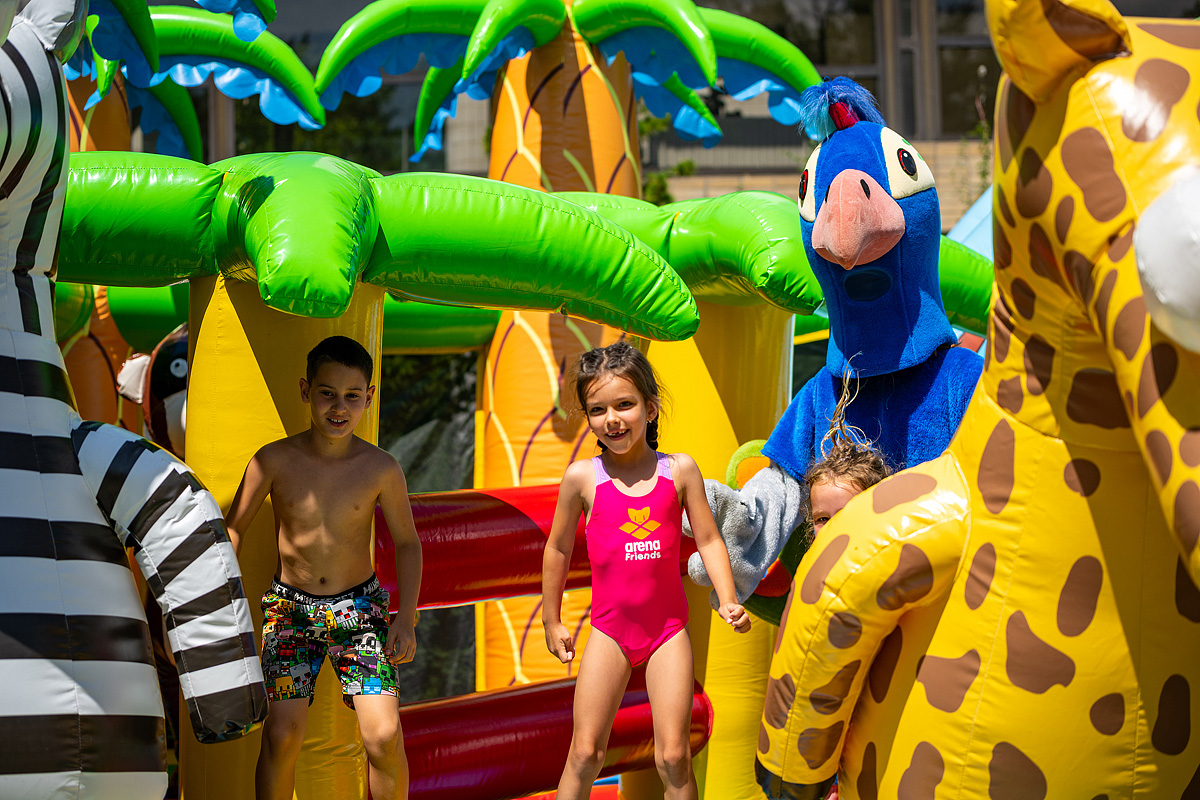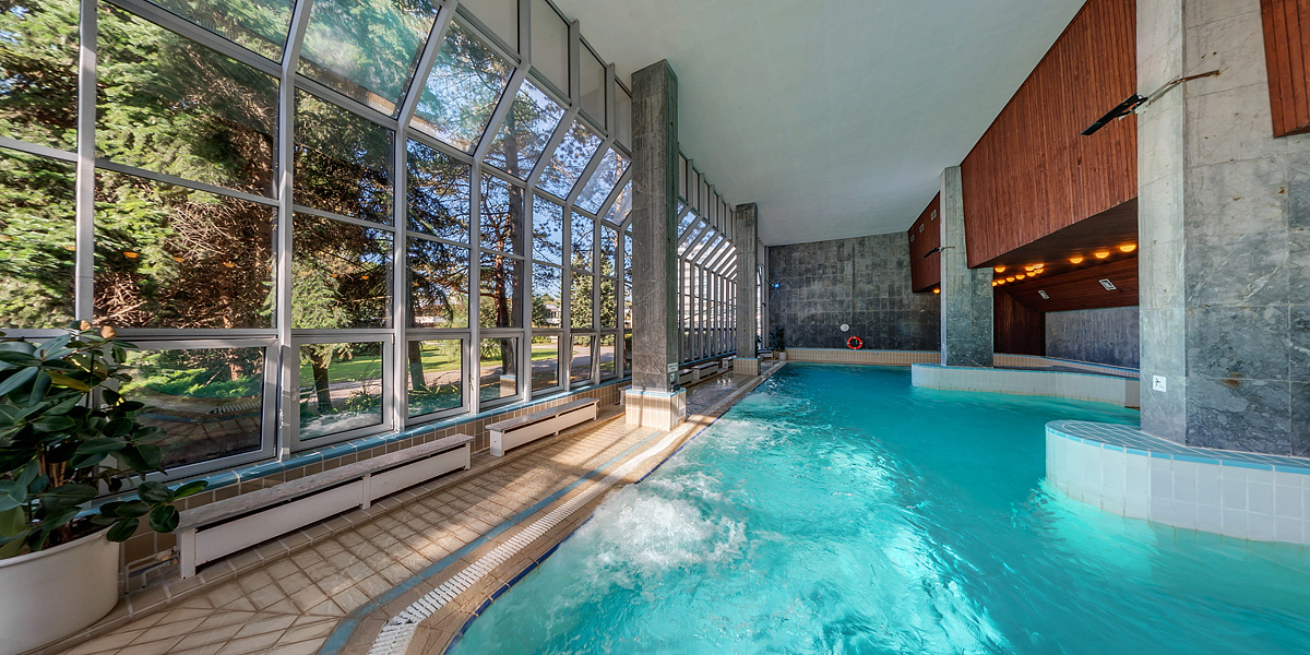 vonkajší plavecký bazén (do 33 °C), vnútorný plavecký bazén (do 33 °C) s masážnymi tryskami