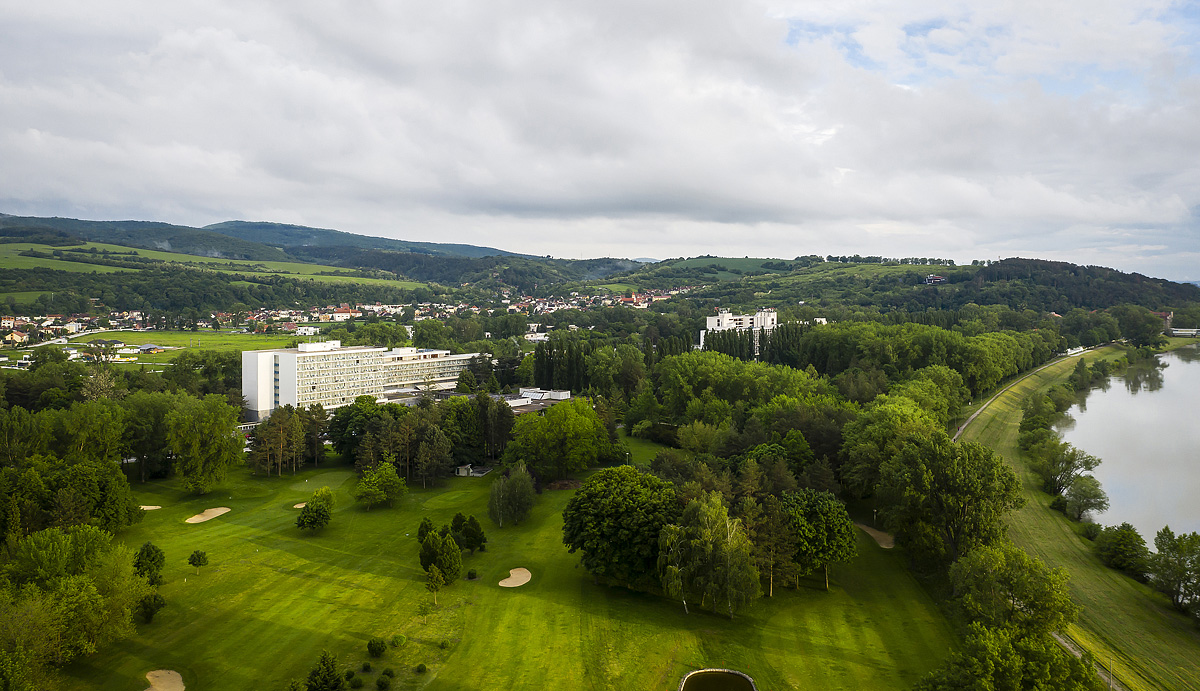 hotelový komplex obklopený zeleňou, v kľudnom prostredí Kúpeľného ostrova