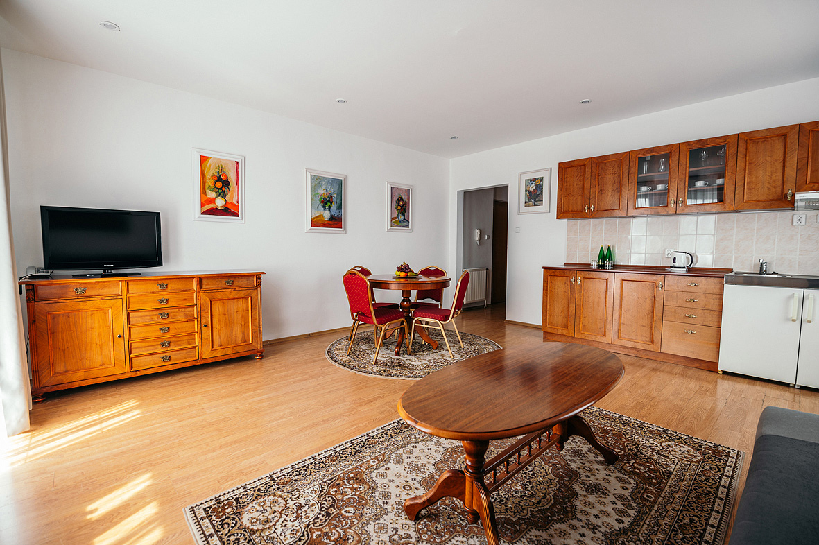 TV sat., telefón, wi-fi pripojenie na internet, chladnička, malá kuchyňa