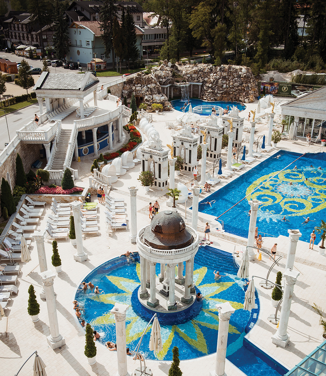 Saunový svet: fínska sauna, bylinková para, mentolová para, soľná sauna, arabská sauna, tepidárium, ochladzovací bazénik, odpočiková miestnosť s ležadlami, denne saunové rituály;