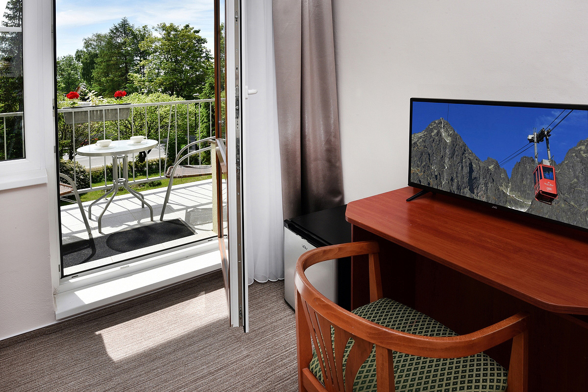 TV sat., wi-fi pripojenie na internet, fén, malá chladnička, rýchlovarná kanvica s čajovým setom