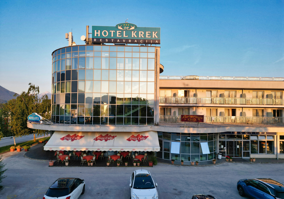 Hotel Krek sa nachádza pri zjazde z diaľnice smerom k jazeru Bled, v blízkosti obchodnej zóny. Jeho strategická poloha je výhodná najmä pre rýchle napojenie na tranzitnú dopravu pri ceste ďalej na juh. Zároveň ponúka dobré spojenie s obľúbenými turistickými cieľmi, ktorými sú jazerá Bled a Bohinj.