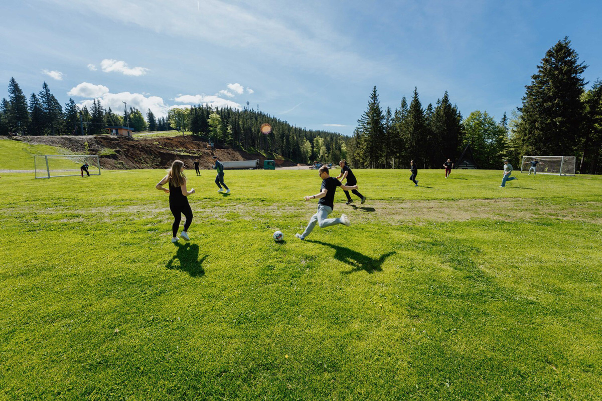 vonkajšie športoviská: futbalové ihrisko, pieskové ihrisko na volejbal, detské ihrisko