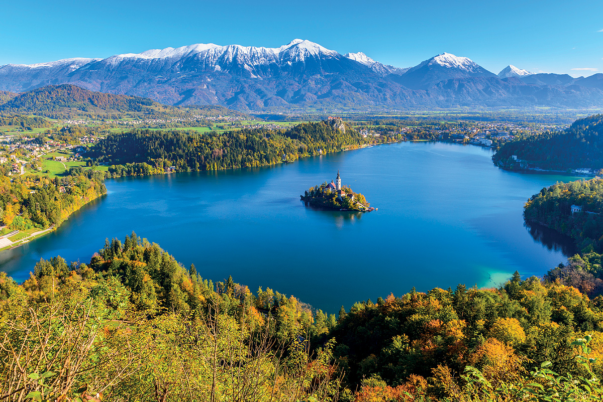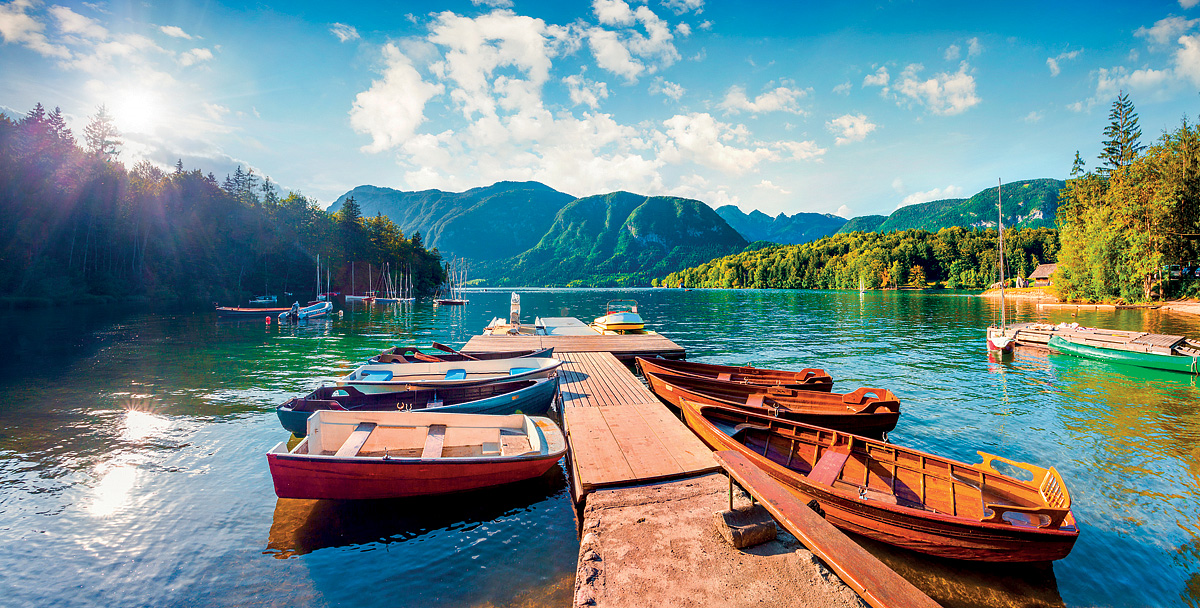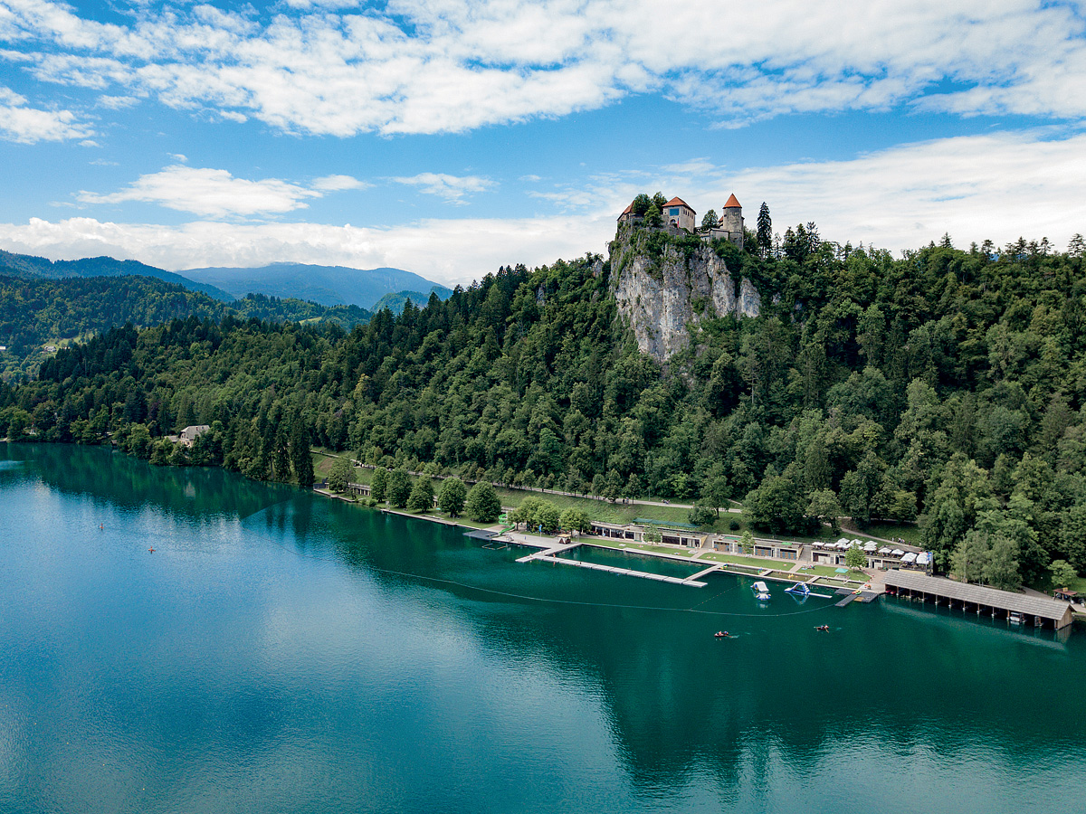 Nech už sa vydáte hore „po svojich“, na bicykli či lanovkou, vždy si budete so zatajeným dychom vychutnávať nádherné panorámy s najvyššou horou Slovinska Triglavom, Bohinjským jazerom a okolitým národným parkom. Jednou z najkrásnejších častí Slovinska je Bledské jazero s kostolom na ostrove, ktoré je úplne s istotou najfotografovanejším miestom v zemi. Na Blede sú však i termály lákajúce k celoročným pobytom. Bledské jazero je oproti iným horským jazerám veľmi teplé, má dlhú kúpaciu sezónu a láka ponukou všemožných športov (napr. paddleboard, veslovanie).