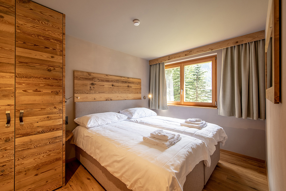 58 až 67 m² - 2 spálne s manželskou posteľou s oddeliteľnými lôžkami (so šírkou 180 cm), obývacia izba s kuchynským kútom a rozkladacím gaučom (so šírkou 160 cm) pre 2 osoby, sociálne zariadenie so sprchou či vaňou, 1x oddelené WC, terasa či balkón na juh