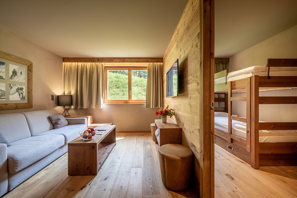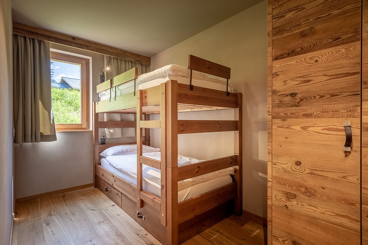 51 m² - 1 spálňa s manželskou posteľou s oddeliteľnými lôžkami (so šírkou 180 cm), spálňa s poschodovu posteľou pre 2 osoby, obývacia izba s kuchynským kútom a rozkladacím gaučom (so šírkou 160 cm) pre 2 osoby, sociálne zariadenie, 1x oddelené WC
