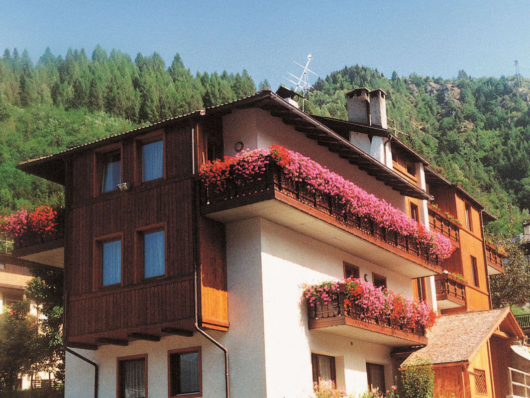 pekný a udržiavaný apartmánový dom v klasickom horskom štýle s polohou v centre obľúbeného turistického mestečka Mezzana