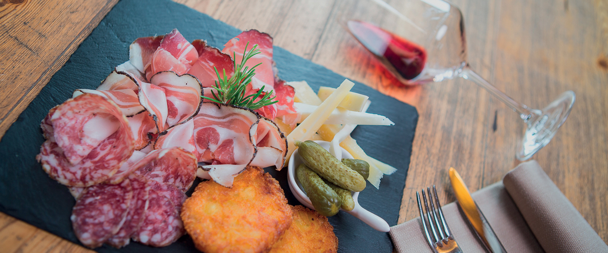 servírované menu s výberom z 3 teplých predjedál a 3 hlavných jedál s prílohou, šalátový bufet, servírovaný dezert alebo syry, ovocie formou malého bufetu, nápoje za poplatok; 1× týždenne typická večera