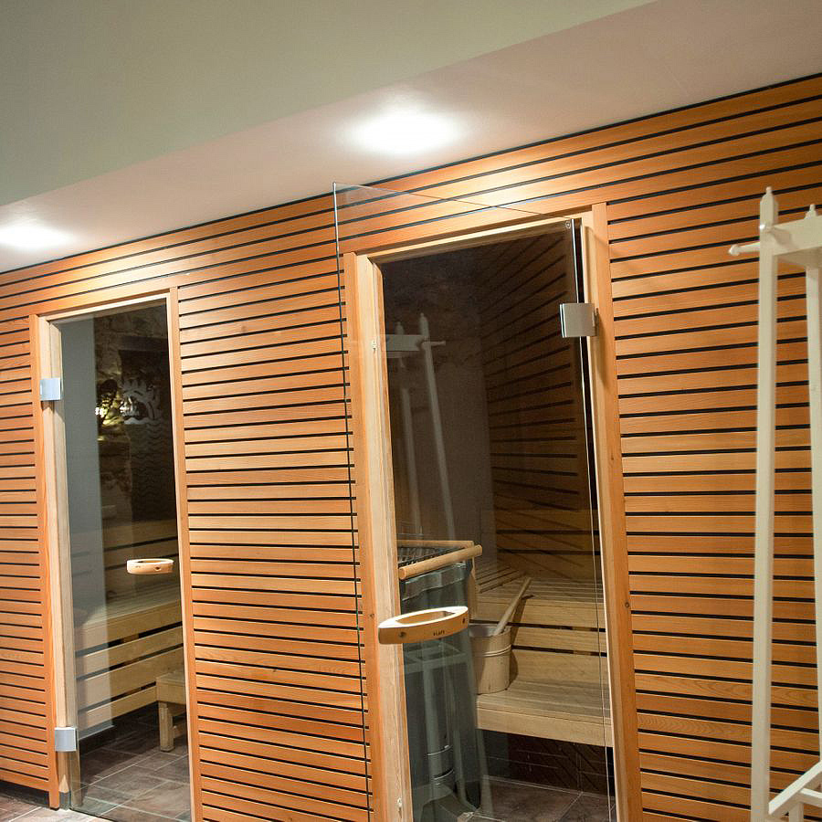 bazén 11 x 5 m s vírivkou, umelým vodopádom a lehátkami, sauna#, bio sauna#, para#, infrakabína#, relaxačný kútik s lehátkami#, posilňovňa#, masáže#*, stolný futbal; služby označené # môžu využívať osoby až od 18 rokov