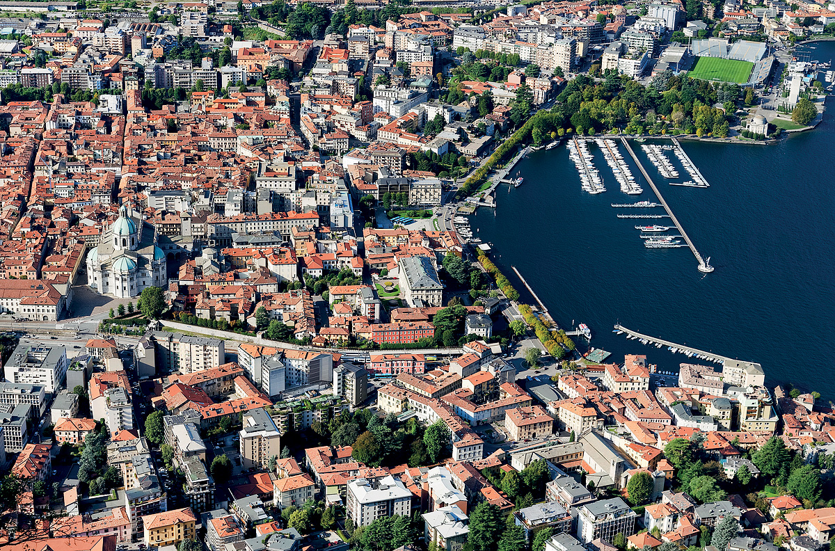 Z pamiatok je možné menovať Dóm zo 14. storočia a starobylý kostol Brolleto z roku 1215. V centre starého mesta v blízkosti jazera a katedrály nájdete veľký pomník slávneho tunajšieho rodáka, fyzika Alexandra Voltu. Dobre je zachované aj stredoveké opevnenie mesta.