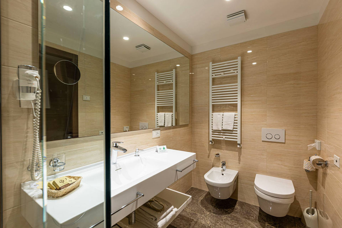 Tv sat., klimatizácia, telefón, trezor, sušič vlasov, nápojová chladnička a rýchlovarná kanvica (iba typológia Junior Suite 2/3/4), wi-fi pripojenie na internet
