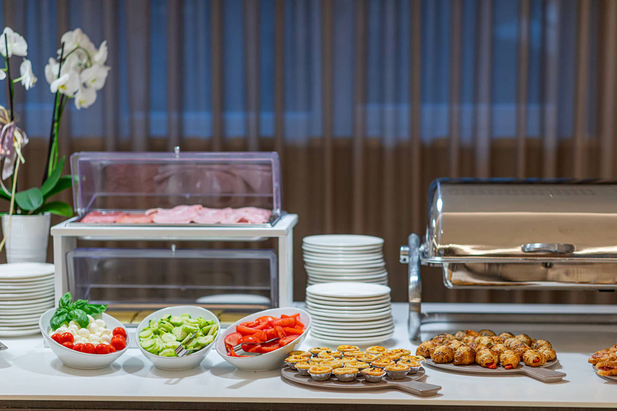 formou servírovaného 3chodového menu s výberom, zvyčajne servírované predjedlo alebo polievka, šalátový bufet, nápoje za poplatok