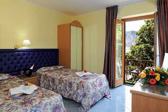 menší hotel priamo na brehu jazera a v historickom centre mestečka
