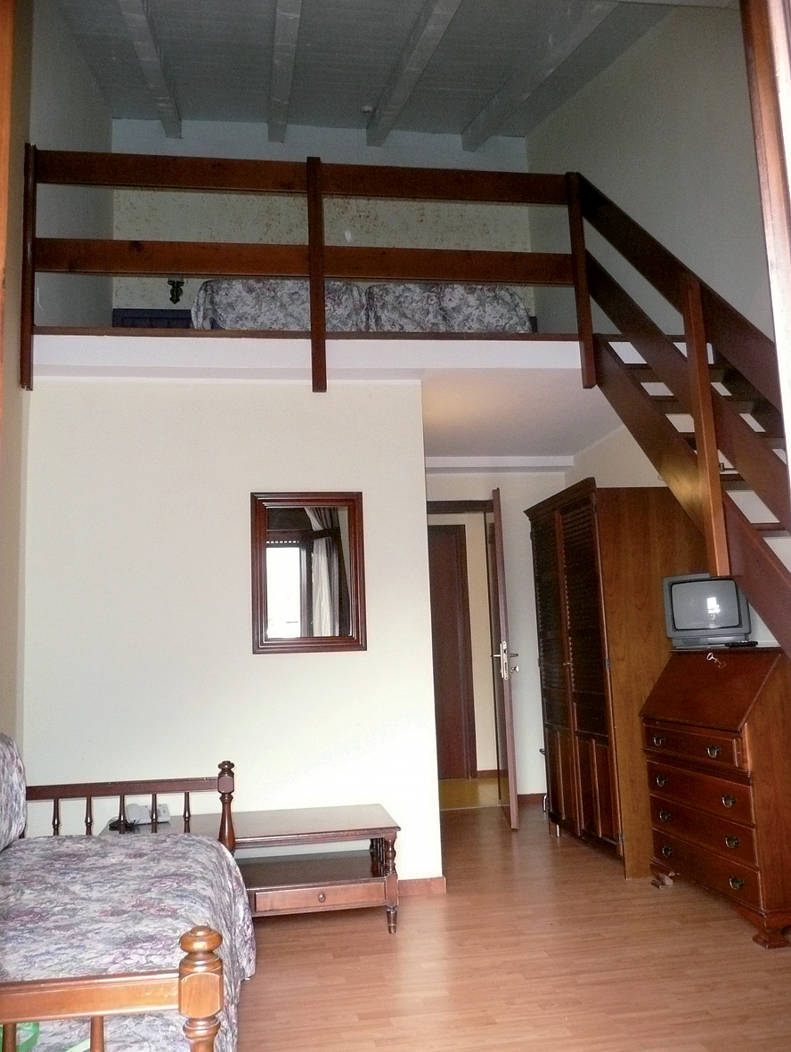 izba mezonetového typu s neuzavretým vyvýšeným podlažím, 1 či 2 samostatné lôžka či manželská posteľ a prípadne 1 ďalšie samostatné lôžko či rozkladací gauč pre 1 osobu, sociálne zariadenie so sprchou; bočný výhľad na jazero