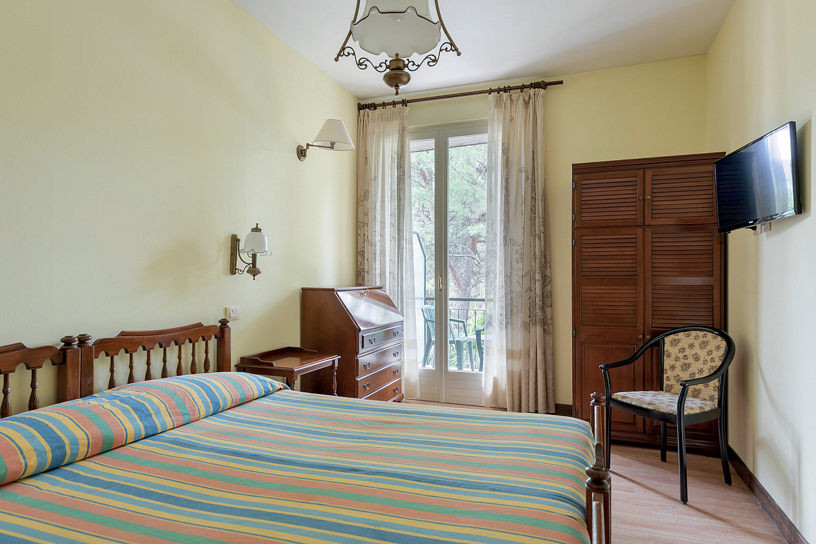izba s 1 či 2 samostatnými lôžkami či manželskou posteľou, sociálne zariadenie so sprchou, 3. lôžko formou prístelky, spravidla balkón či terasa