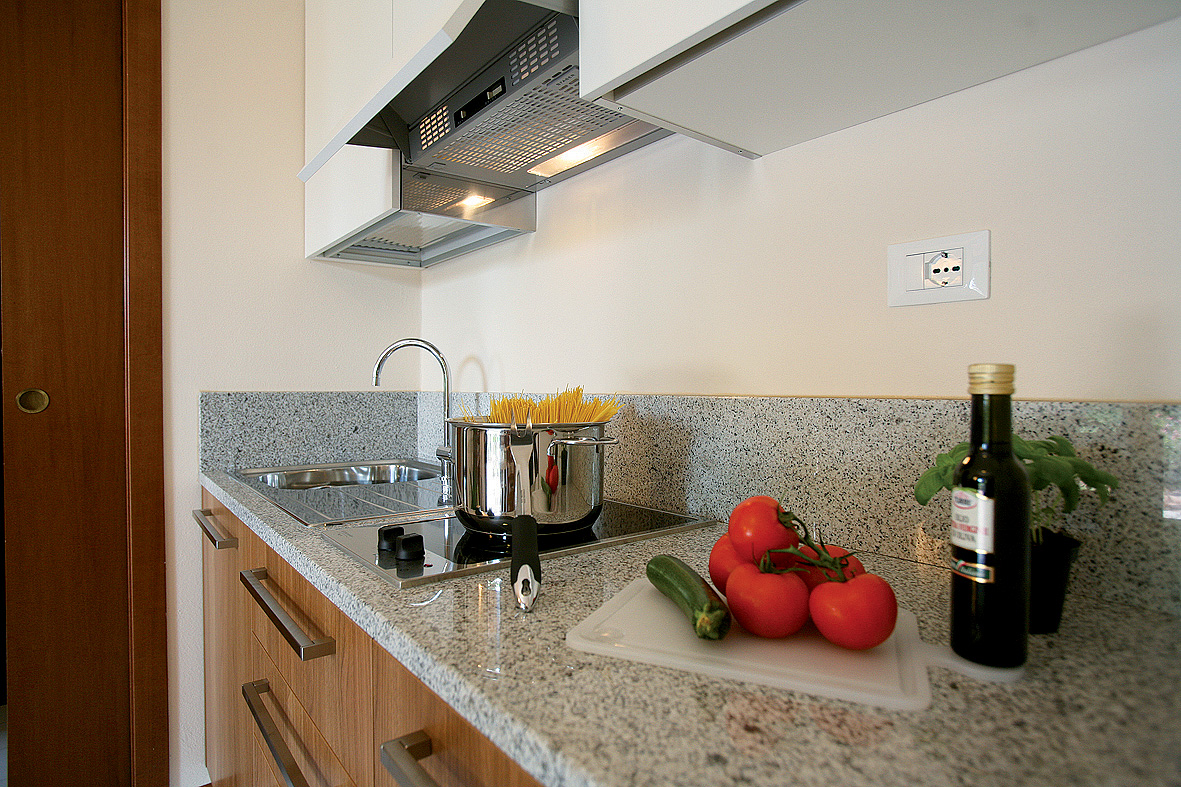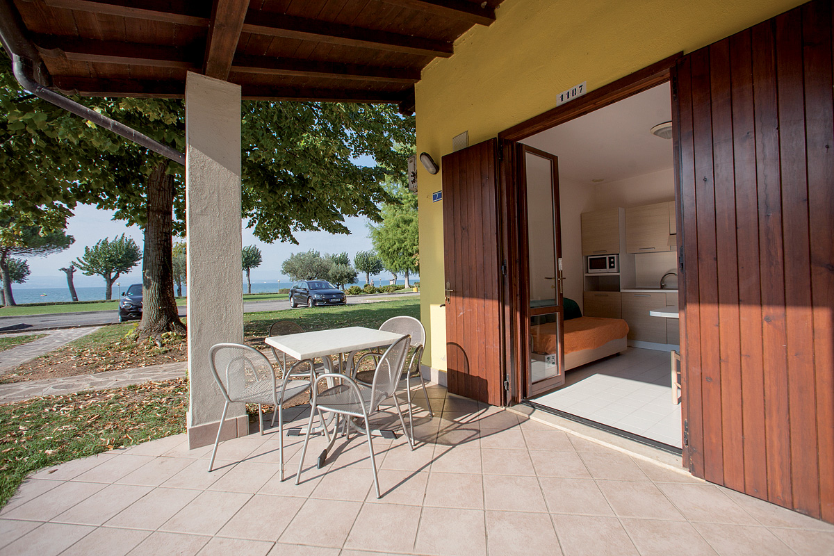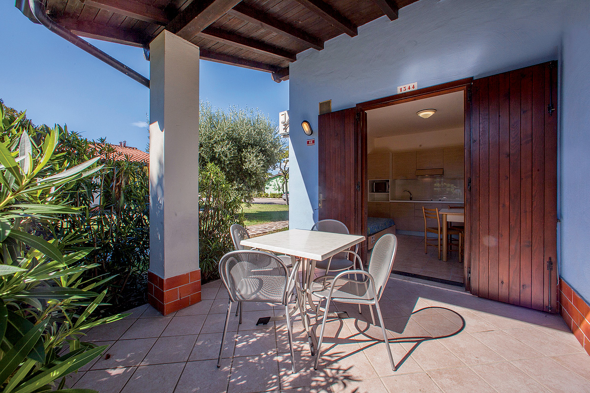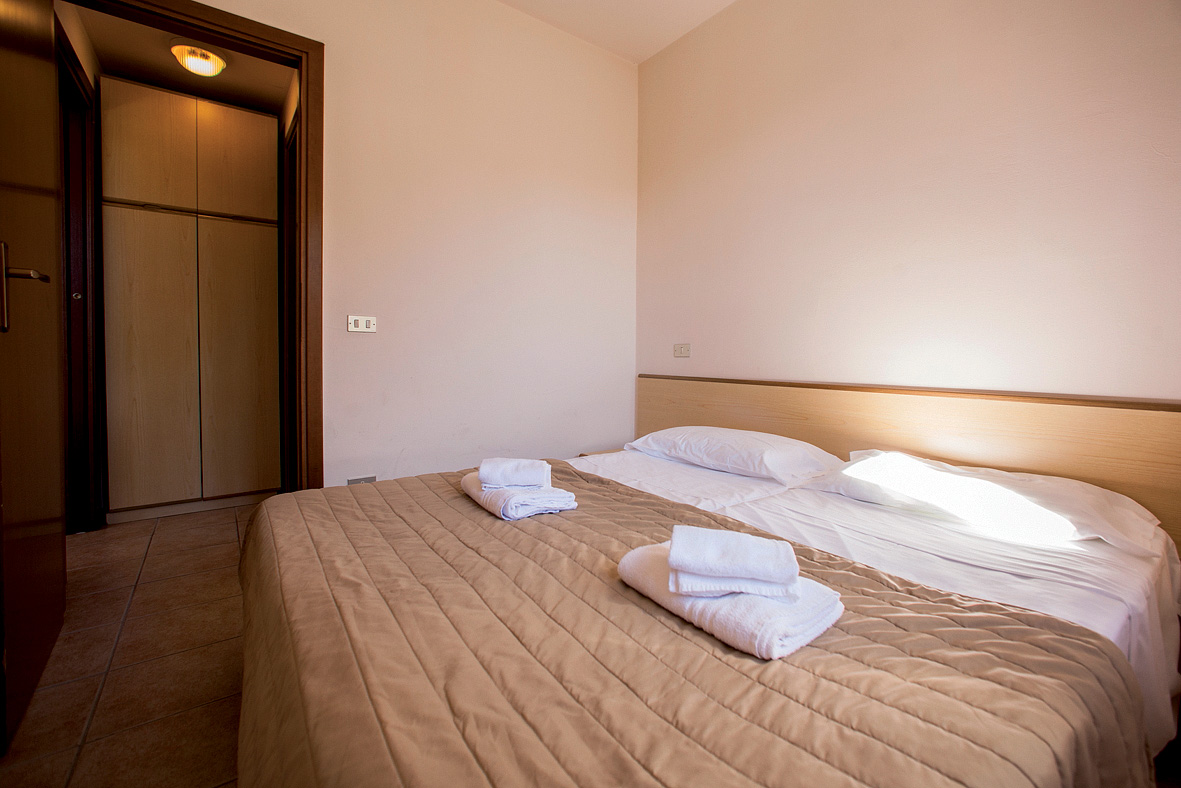 28 m² až 35 m² - 1 spálňa s manželskou posteľou, obývacia izba s kuchynským kútom a rozkladacím gaučom pre 2 osoby na poschodovú posteľ, sociálne zariadenie, zvyčajne terasa s posedením; apartmán po renovácii s novým nábytkom a novou kuchynskou linkou; maximálna obsaditeľnosť apartmánu sú 2 dospelé osoby a 2 deti do nedovŕšených 16 rokov