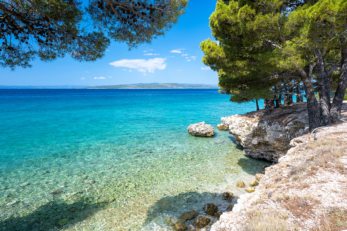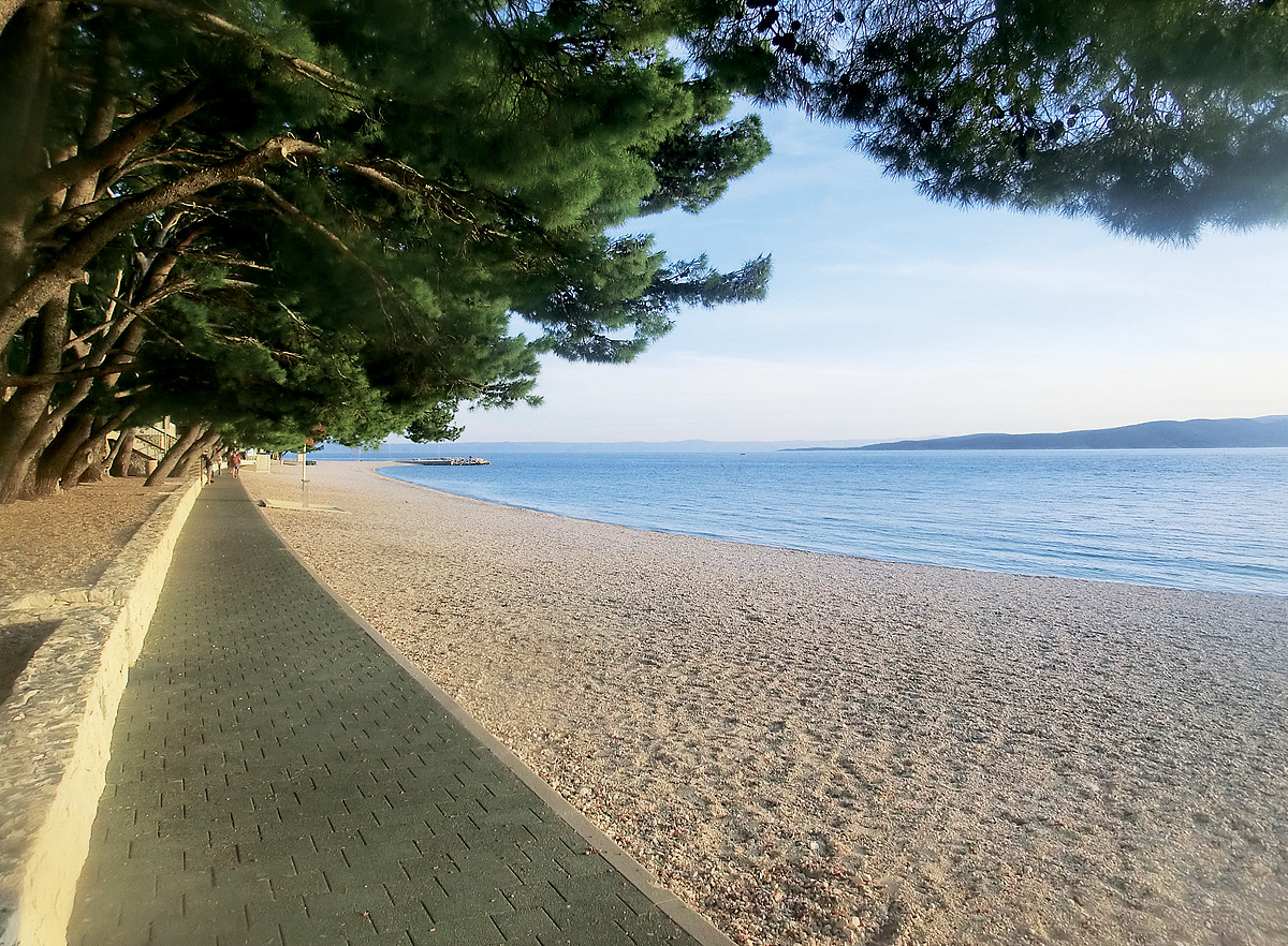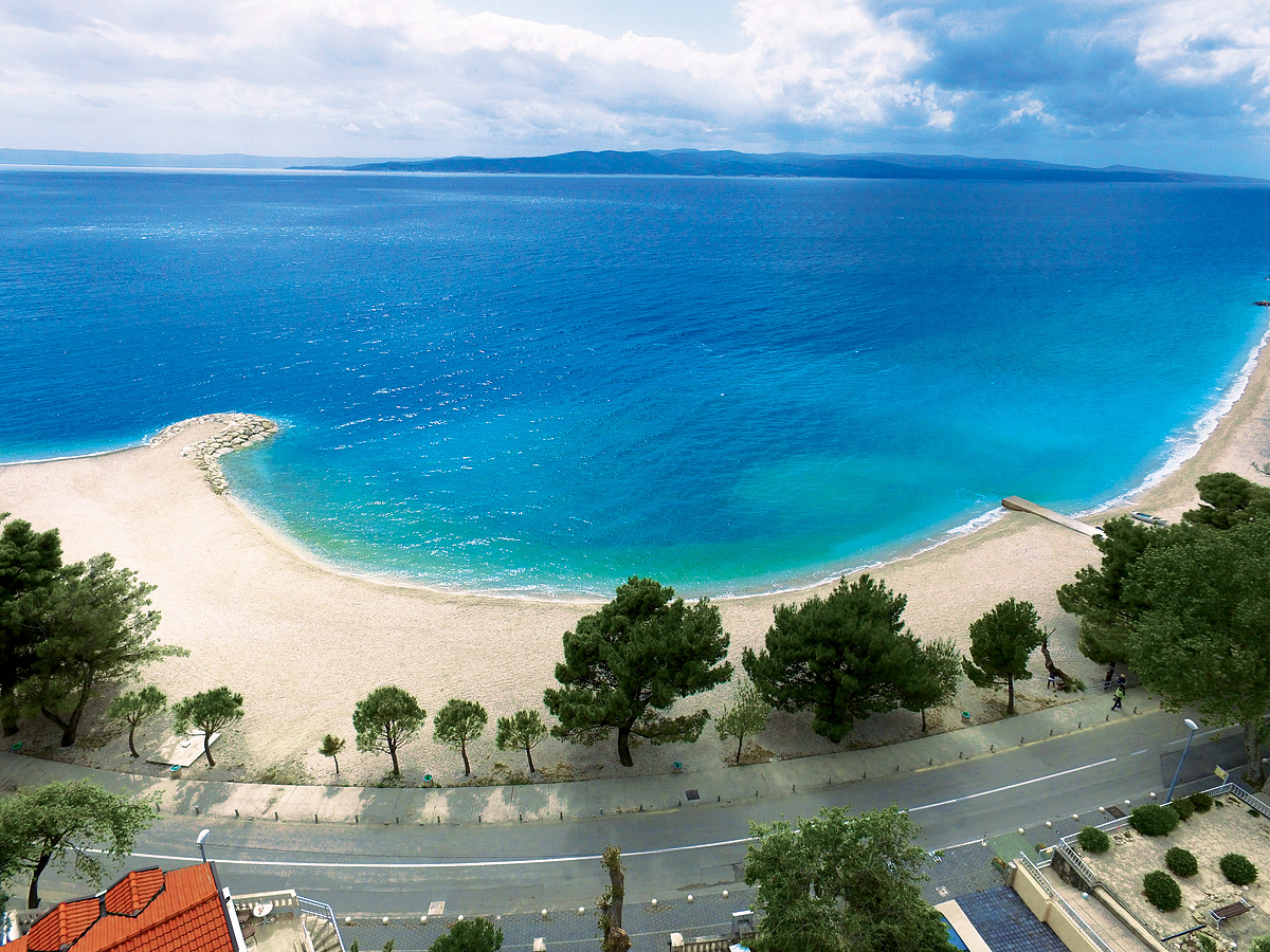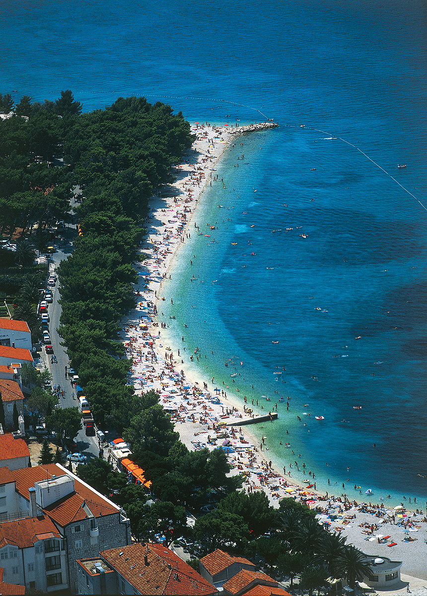 Preslávené sú dalmatínskej pláže s kombináciou hrubého piesku a drobnejších kamienkov, ktorú položila väčšina návštevníkov za príjemnejšie, než sú kamenisté pláže Istrie. Pláže sa tiahnu dlhé kilometre a rozsiahle borovicové lesy im poskytujú toľko žiadaný tieň. Tunajšia bohatá a všadeprítomná vegetácia je bezpochyby jedným z významných aspektov pôvabu a obľuby najmä Makarskej riviéry, ktorá je najznámejšou súčasťou Strednej Dalmácie.