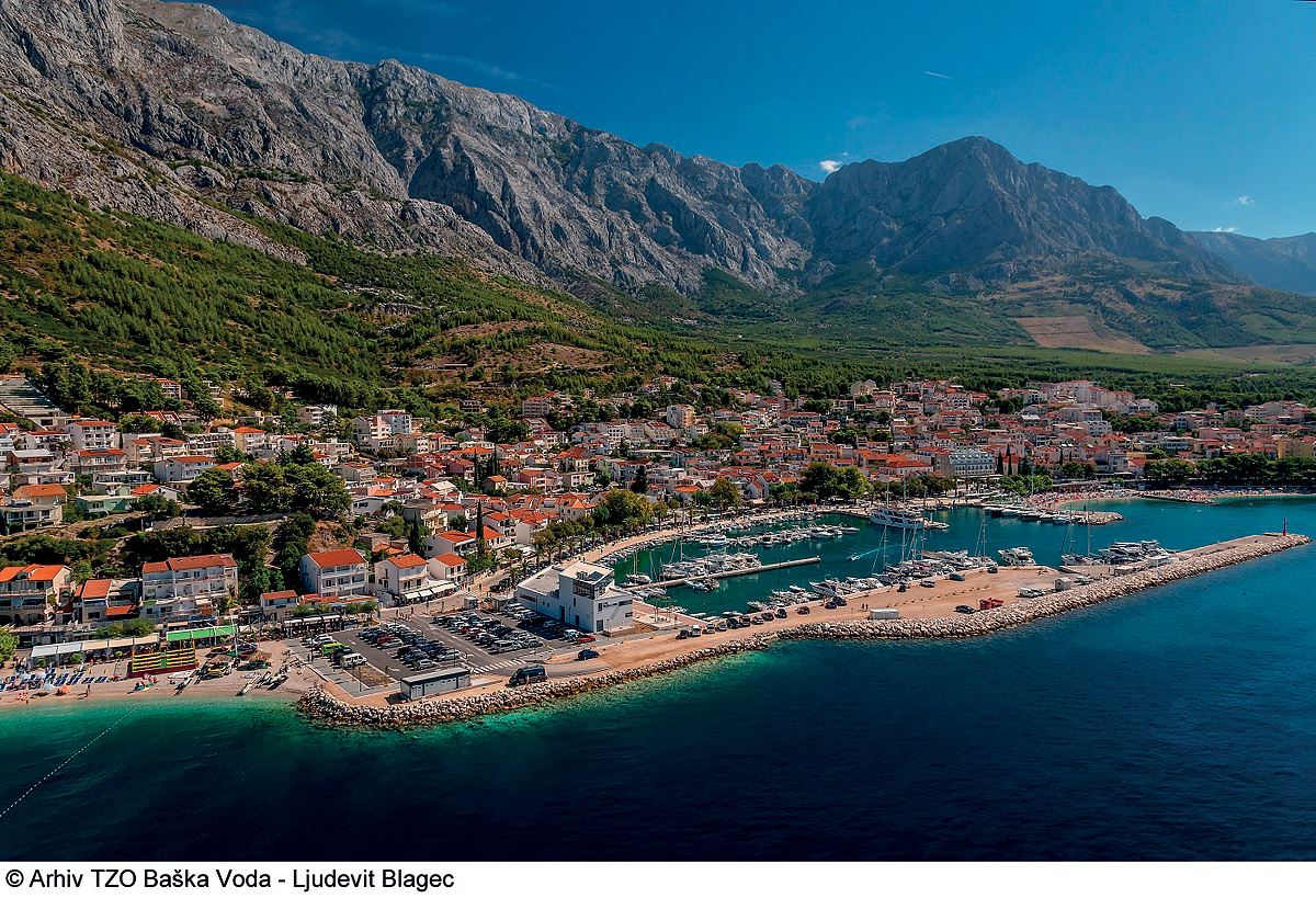 je prístav 10 km severozápadne od Makarskej, jedno z významných a rušných letovísk Makarskej riviéry. V okolí sa pestuje vinič, olivovníky, figovníky a višne maraska. Hojné vegetácii dominujú borovicové lesy. Malebné letovisko Baška Voda patrí k najobľúbenejším v Strednej Dalmácii. Sú tu početné kaviarne, obchody, reštaurácie a bohatý nočný život, proti susednej Brele má však menej exkluzívny, skôr ľudovejší ráz. Ide o ideálny východiskový bod pre populárne výlety loďou na ostrovy Hvar a Brač. Oplatí sa aj výlet do neďalekej Makarskej so zaujímavým malakologickým múzeom - zbierkou mušlí z Jadranu aj zo svetových morí.