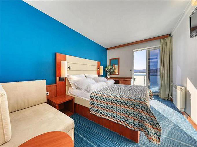 Superior 2/3 balkon M - 21 m² - izba s manželskou posteľou či dvomi oddelenými lôžkami s možnosťou prístelky formou mobilného lôžka (75 x 200 cm), sociálne zariadenie so sprchou, balkón s posedením s výhľadom na more