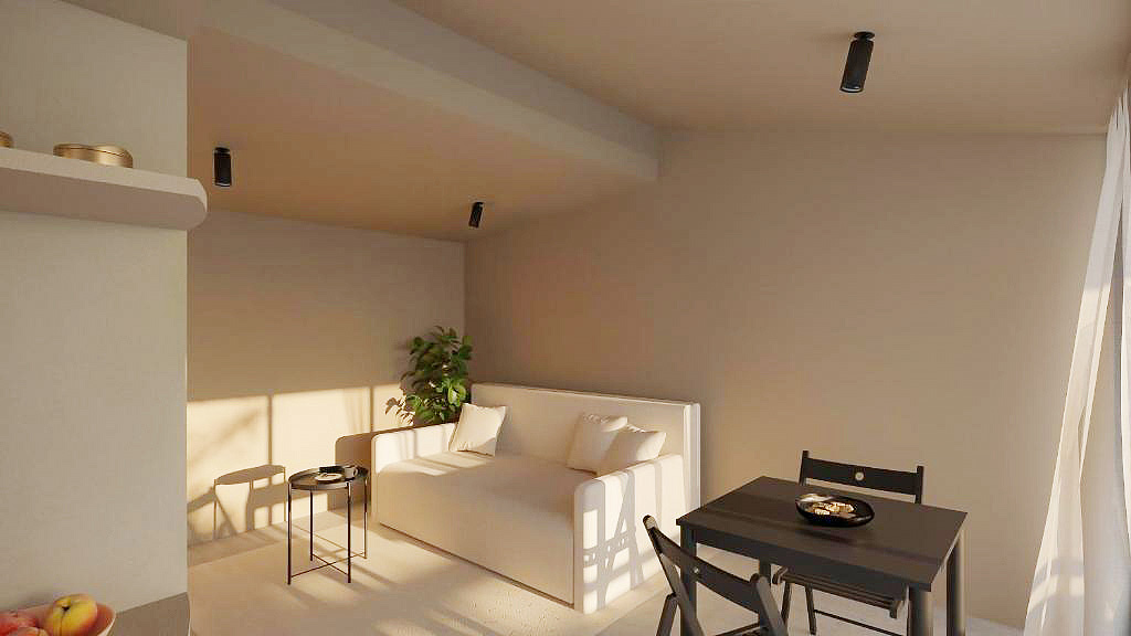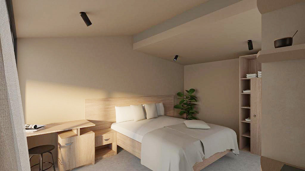 spálňa s manželskou posteľou, obývacia izba s kuchynským kútom a rozkladacím gaučom pre 2 deti do nedovŕšených 18 rokov, sociálne zariadenie so sprchou, terasa