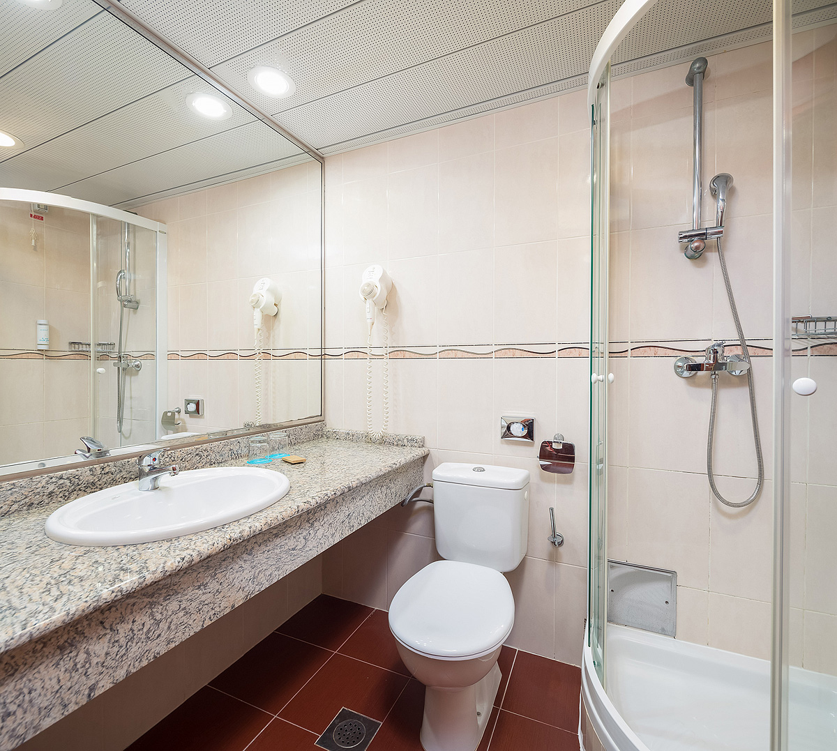 izba s manželskou posteľou či dvomi oddelenými lôžkami, poprípade prístelka formou rozkladacej pohovky, sociálne zariadenie so sprchou alebo vaňou, balkón alebo terasa, orientácia na park